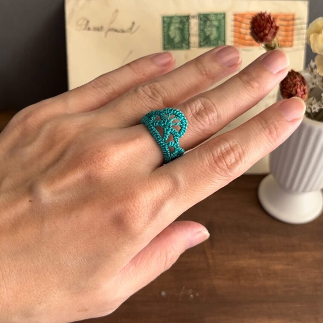 ヘデボ刺繍でレースのような風合いに仕上げた、軽くやわらかな付け心地のリングです。